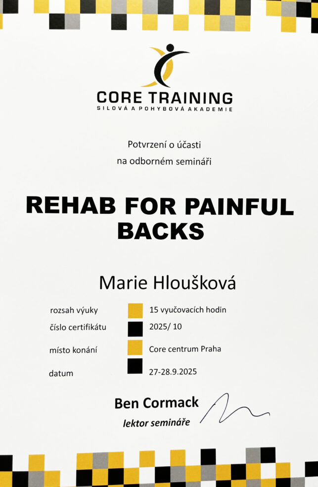 Dokončené bakalářské studium na fakultě FBMI – obor FYZIOTERAPIE