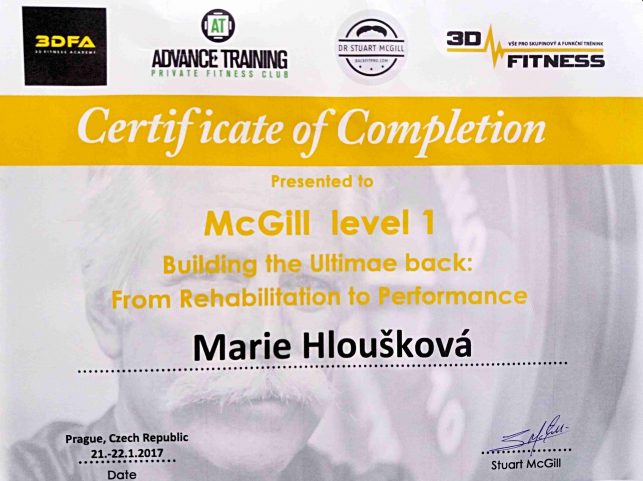 Dokončené bakalářské studium na fakultě FBMI – obor FYZIOTERAPIE