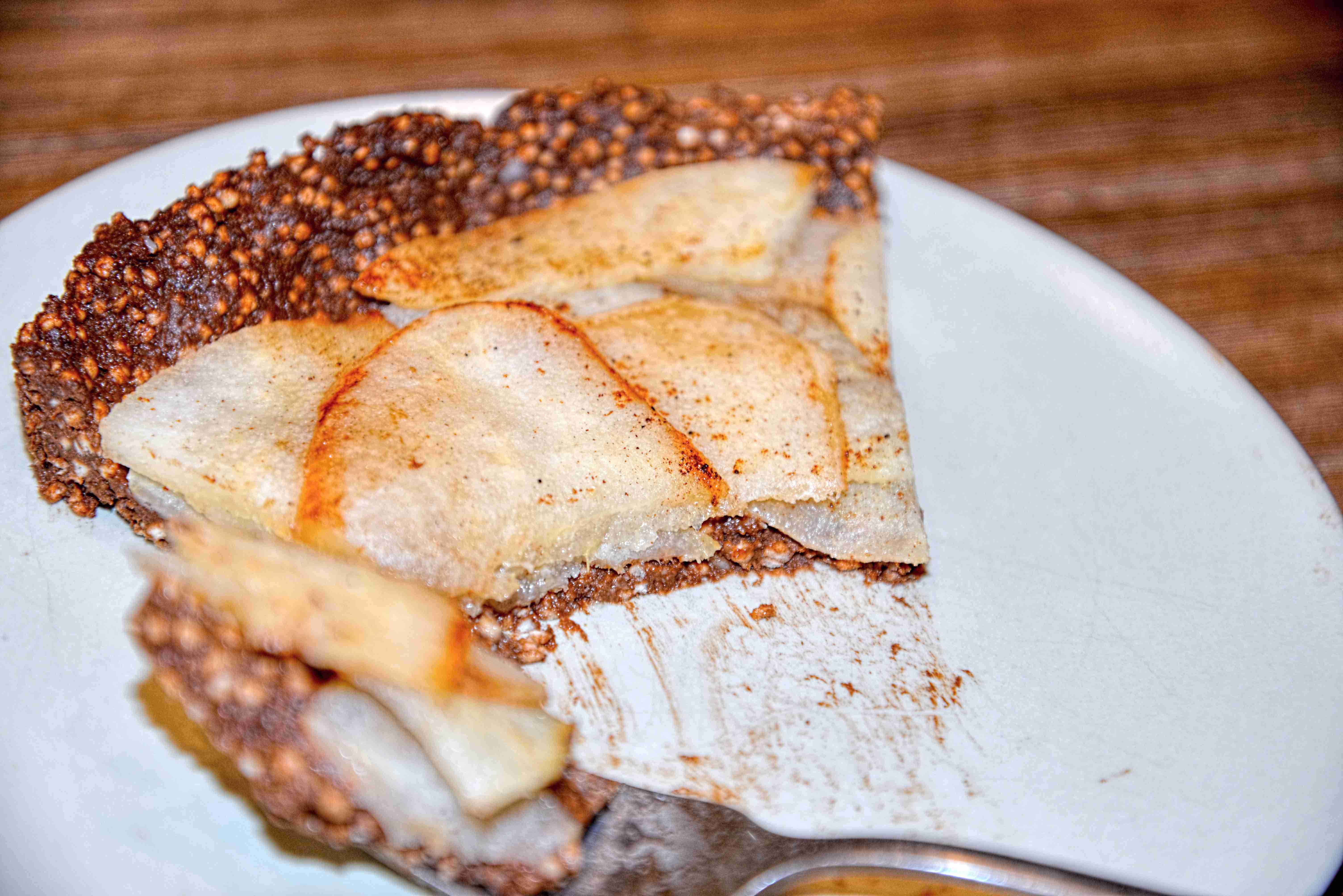 Nepečený koláč s karamelizovanou hruškou (vegan, bez lepku a bez laktózy)
